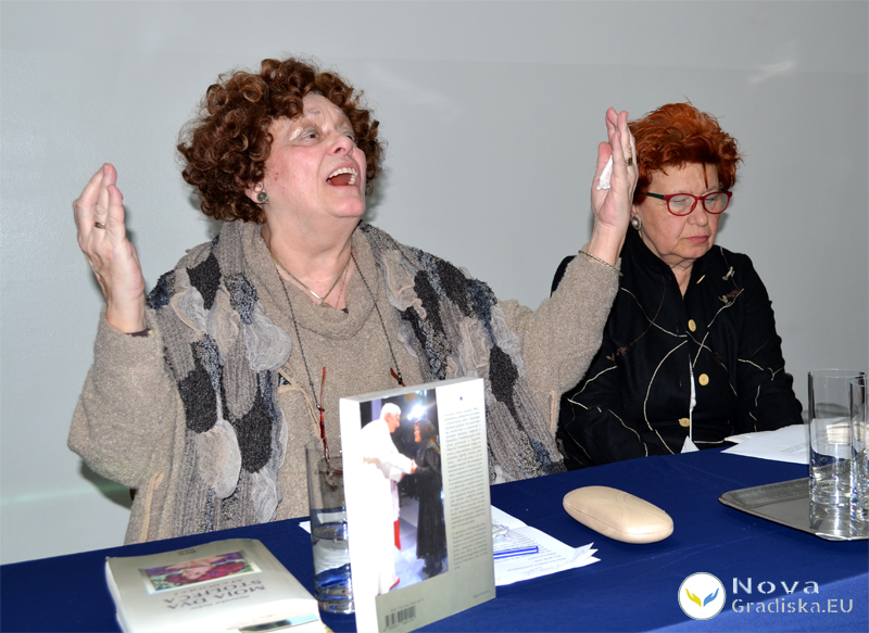 - – Susrela se i osobno sa Svetim ocem Ivanom Pavlom II. te Benediktom XVI. – To je, možda i vrhunac moga života. Naročito susret s papom Ivanom Pavlom II., koji je toliko volio Hrvate i toliko se brinuo o nama da je to čak i na pojedinačnom slučaju bilo evidnetno. Bila sam 17 puta nazočna u Rimu, a nekoliko puta i u privatnoj audienciji. Prvi susret sa svetim Ocem Ivanom Pavlom II bio je nezaboravan, jer me primio kao majku, njegova je umrla kada je bio dječak, a ja sam bila prva majka, koja je u Nadbiskupijskoj klasičnoj gimnaziji predavala budućim svećenicima i zajedno sam s učenicima bila na audijenciji. I tada mi je rekao