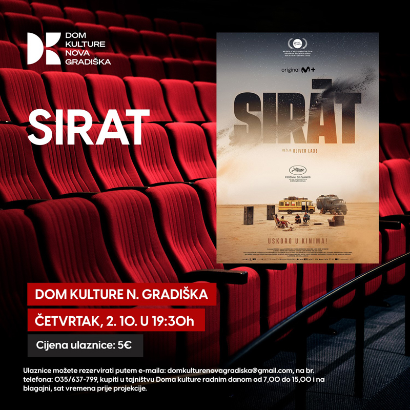 Ulaznice možete rezervirati putem e-maila: domkulturenovagradiska@gmail.com, na br. telefona: 035/637-799, kupiti u tajništvu Doma kulture radnim danom od 7,00 do 15,00 h i na blagajni, sat vremena prije projekcije.