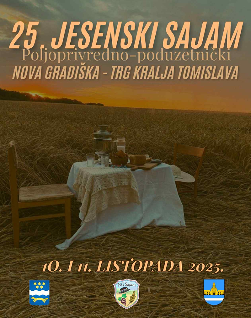 10. i 11. listopada (petak i subota) u Novoj Gradiški će se održati 25. jubilarne Poljoprivredno poduzetničke i popularni jesenski Novogradiški sajam.