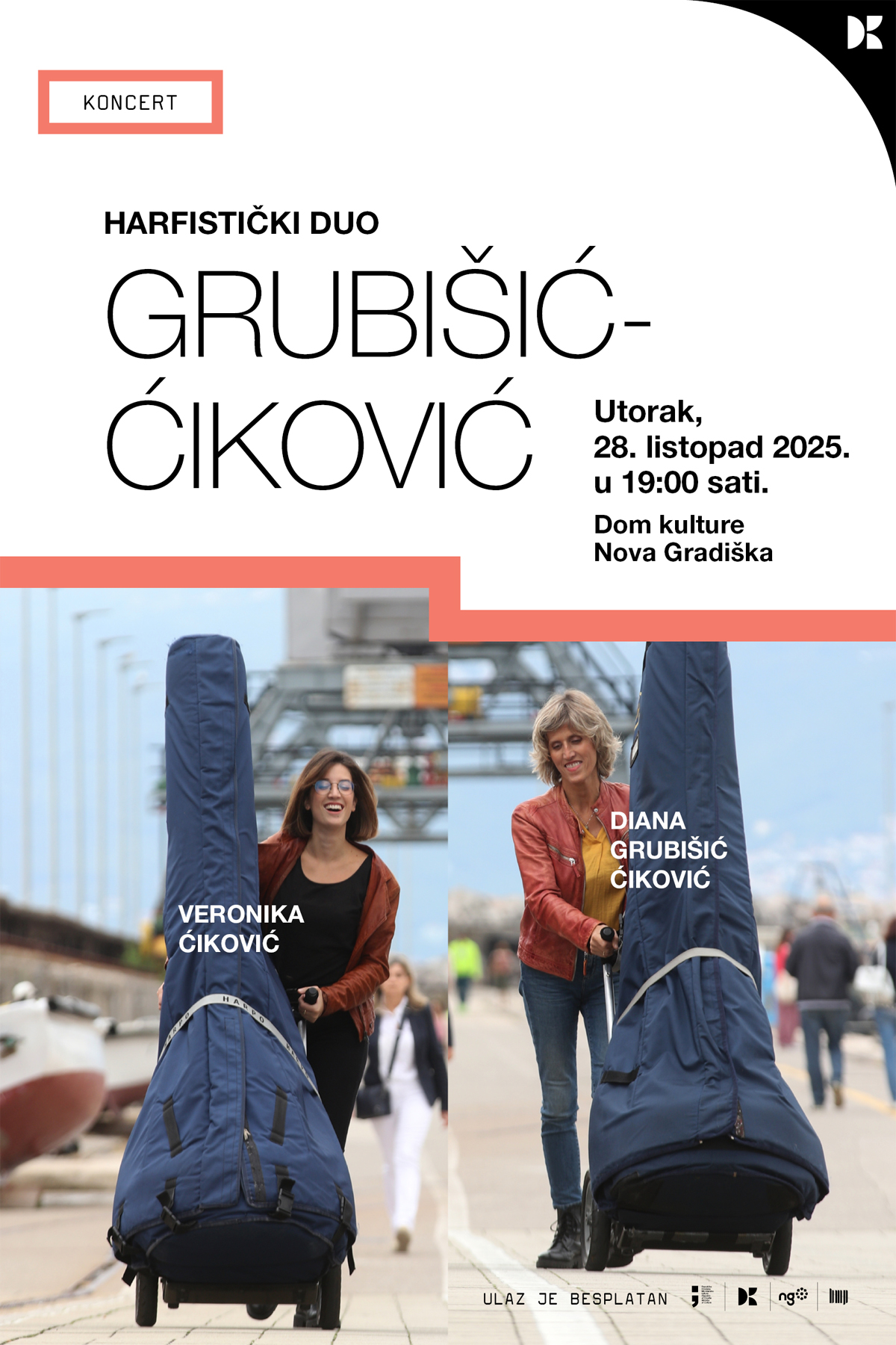 Iz Doma kulture Nova Gradiška pozivaju vas na koncert klasične glazbe “Structures transparentes et volantes“ na kojem će nastupiti harfistički duo Grubišić – Ćiković u sastavu Diana Grubišić Ćiković i Veronika Ćiković. Nastup cijenjenih umjetnica održat će se u utorak 28. listopada u 19 sati u Domu kulture.
