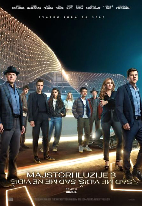 “SAD ME VIDIŠ, SAD ME NE VIDIŠ” – iluzija kakvu vaše oči još nisu doživjele! Četiri Jahača vraćaju se moćniji i spretniji nego ikad, a s njima stiže nova generacija iluzionista spremnih pomaknuti granice mogućega. Treći nastavak hit-sage o vrhunskim iluzionistima briše crtu između stvarnosti i obmane – svaki trik nadmašuje onaj prethodni, a najveće iznenađenje nikada nije ono koje očekujete. Zvjezdanu postavu predvode Jesse Eisenberg, Woody Harrelson, Dave Franco i Isla Fisher, uz pojačanja Justicea Smitha, Dominica Sesse i Ariane Greenblatt, te karizmatičnu Rosamund Pike i legendarnog Morgana Freemana. Pripremite se za adrenalinski vrtlog hipnotizirajućih varki – pravilo je samo jedno: nemojte treptati, jer ono što vidite možda nije ni djelić onoga što se doista događa!