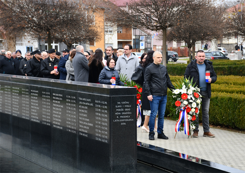Obilježavanje Dana grada i blagdana Bezgrješnog začeća Blažene djevice Marije započelo je danas polaganjem vijenaca i paljenjem svijeća kod spomenika poginulim hrvatskim braniteljima kod biste dr. Franje Tuđmana. Predstavnici udruga proisteklih iz Domovinskog rata, izvršne i odlučne vlasti Grada Nove Gradiške, Brodsko-posavske županije, Policije, Vatrogasaca, gradskih tvrtki i ustanova odali su danas počast svima koji su svoje živote dali da bi mi upravo danas slavili Dan grada.