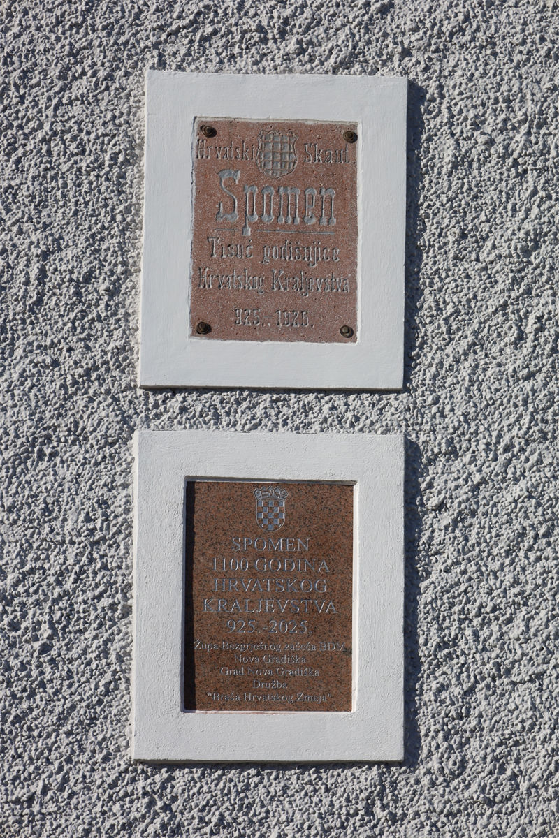 Na crkvi svete Terezije Avilske u utorak je svečano otkrivena spomen-ploča u čast 1100 godina Hrvatskog kraljevstva. Ploču su otkrili gradonačelnik Vinko Grgić, Hrvoje Špicer, ravnatelj Muzeja brodskog posavlja, te župnik novogradiške župe Bezgrješnog začeća Blažene Djevice Marije, Mario Sanić.