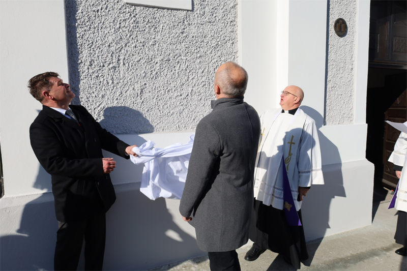 Spomen-ploču blagoslovio je župnik Mario Sanić, a đakon Dario Bauman tom je prigodom pročitao Povelju o obnovi prve župne crkve svete Terezije Avilske te obnovi sadašnje župne crkve, ostvarenoj uz pomoć Grada Nove Gradiške, Ministarstva kulture i vjernika župe.
