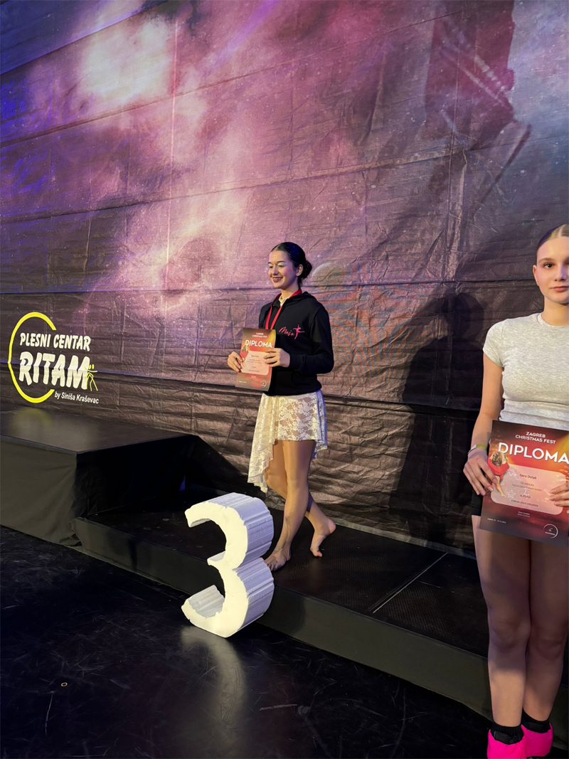 Na Zagreb Christmas Ball natjecanju 6.12.2025. u Mozaik event centru naše su plesne grupe svih dobnih uzrasta ostvarile zapažene uspjehe, potvrdivši kontinuirani rad, predanost i timski duh koji se gradi tijekom cijele godine. Nastupi su bili tehnički snažni, scenski uvjerljivi i iznimno dobro prihvaćeni od strane publike i stručnog žirija, a naša koreografija „Welcome to the Wild West“ osvojila je posebnu nagradu za najbolju kostimografiju.