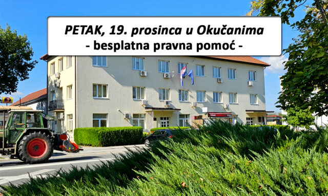 - Ovaj petak, 19. prosinca 2025. građani mogu dobiti besplatnu pravnu pomoć u prostorijama općine Okučani na adresi Trg Franje Tuđmana 1 od 9 do 13 sati.