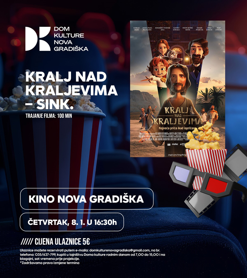 Ulaznice možete rezervirati putem e-maila: domkulturenovagradiska@gmail.com, na br. telefona: 035/637-799, kupiti u tajništvu Doma kulture radnim danom od 7,00 do 15,00 h i na blagajni, sat vremena prije projekcije.