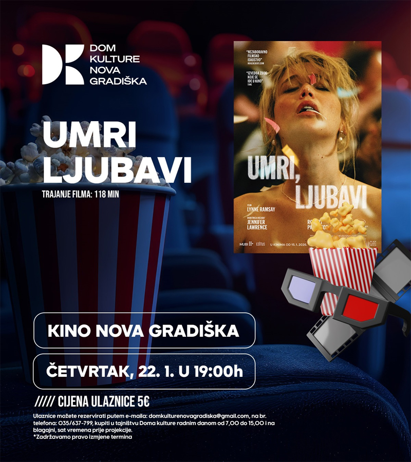 Ulaznice možete rezervirati putem e-maila: domkulturenovagradiska@gmail.com, na br. telefona: 035/637-799, kupiti u tajništvu Doma kulture radnim danom od 7,00 do 15,00 h i na blagajni, sat vremena prije projekcije.