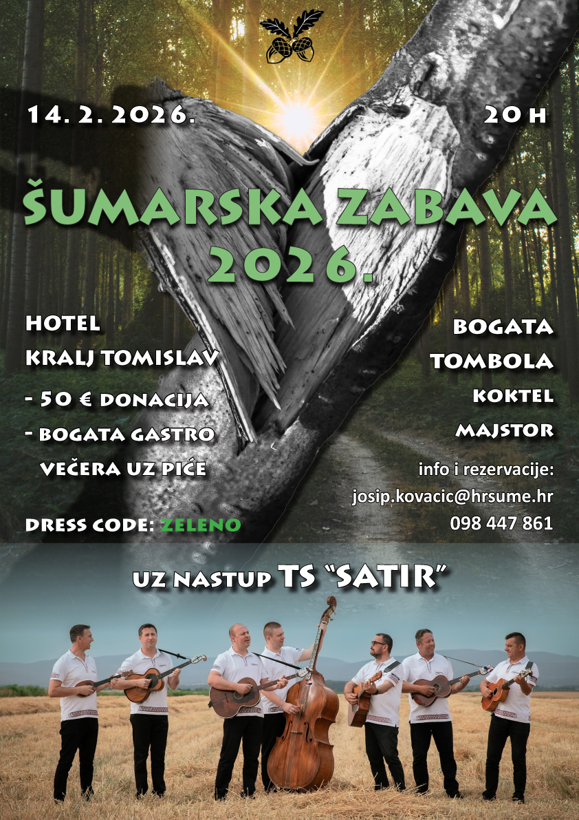 ŠUMARSKA ZABAVA uz bogat sadržaj i TS SATIR 14. veljače u hotelu Kralj Tomislav