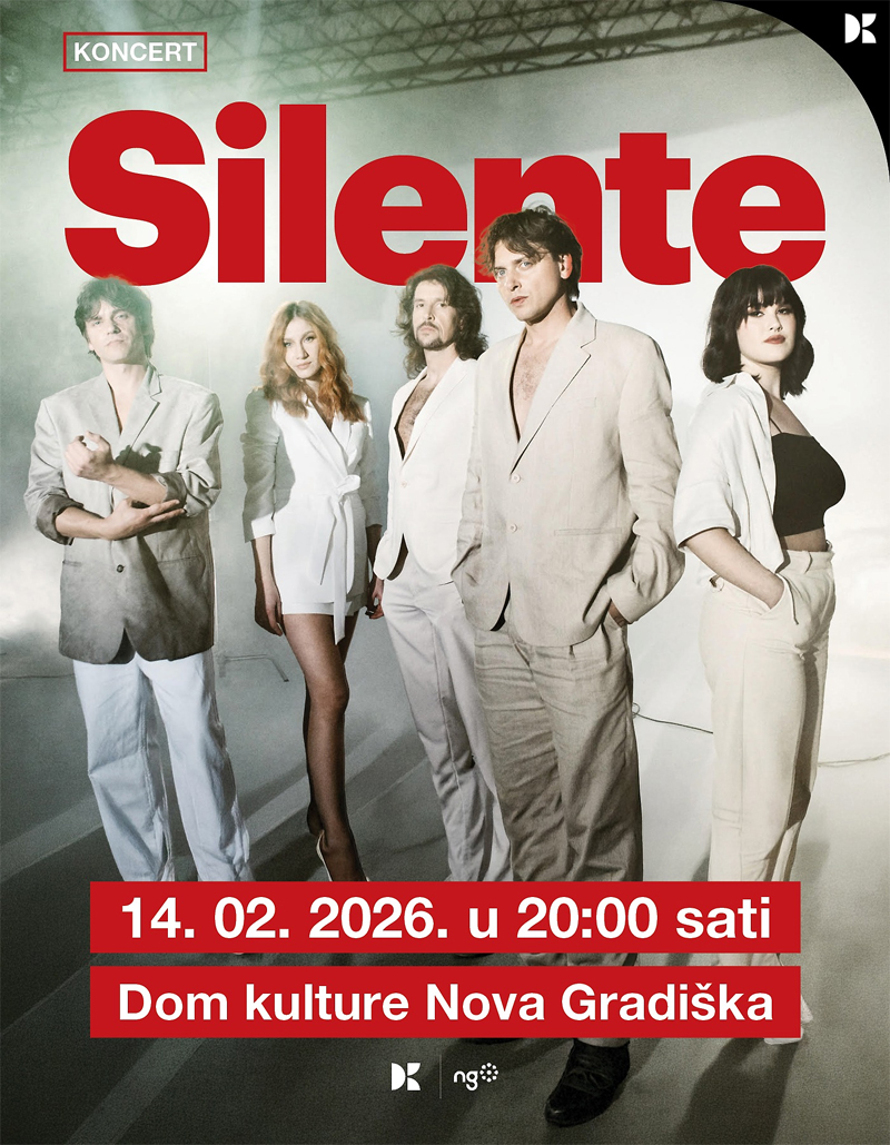 Jedan od najomiljenijih domaćih bendova nove generacije, dubrovački Silente, stiže u Dom kulture Nova Gradiška u sklopu svoje velike regionalne turneje 2026. godine. Koncert će se održati u subotu 14. veljače u 20:00 sati povodom Valentinova. Nakon rasprodanih koncerata diljem Hrvatske, Tibor, Sanin i ostatak ekipe donose svoj prepoznatljivi repertoar pred novogradišku publiku.