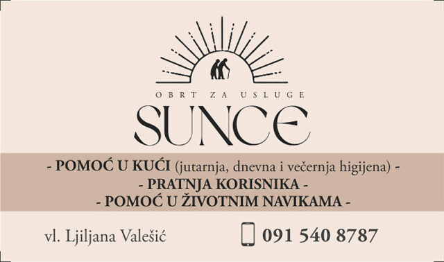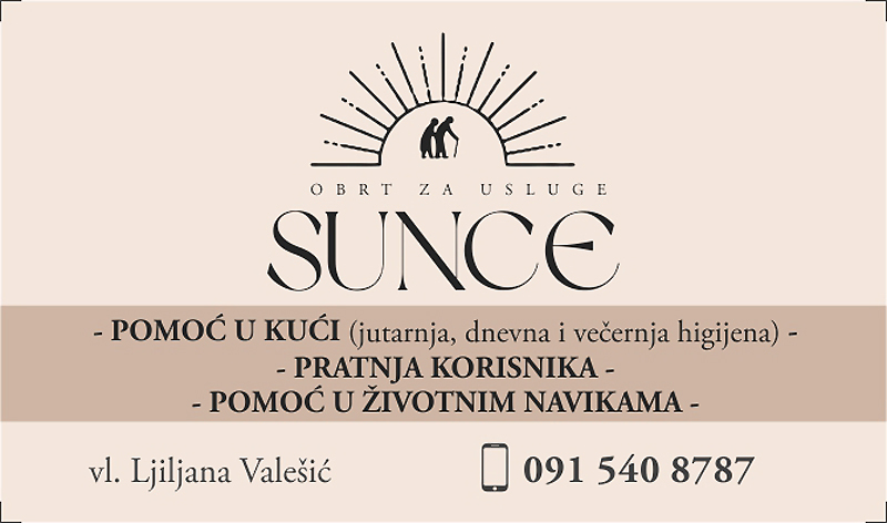 U vremenu kada je briga o starijim i nemoćnim osobama sve veći izazov za mnoge obitelji, lokalni obrt Sunce pruža pouzdanu i stručnu pomoć onima kojima je najpotrebnija.
