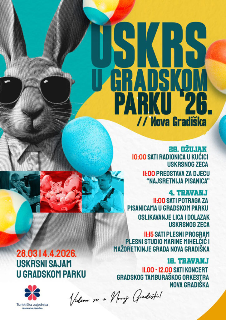Turistička zajednica grada Nove Gradiške i ove godine s ponosom najavljuje tradicionalnu manifestaciju „Uskrs u gradskom parku 2026.“, koja će uoči najvećeg kršćanskog blagdana unijeti radost, zajedništvo i svečano ozračje u srce grada.
