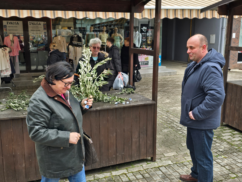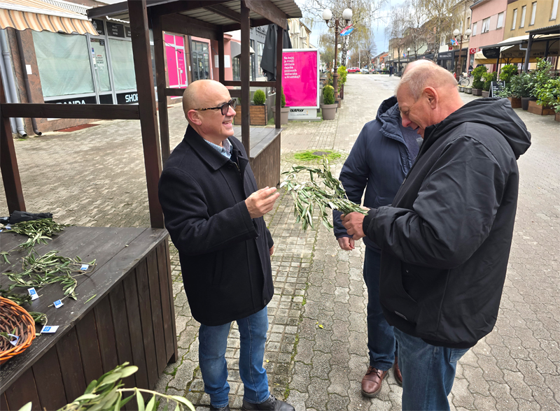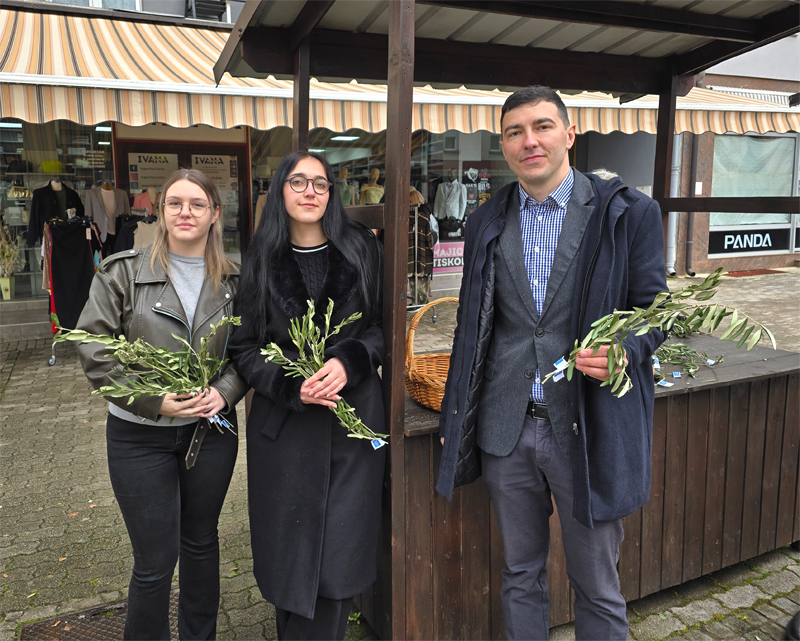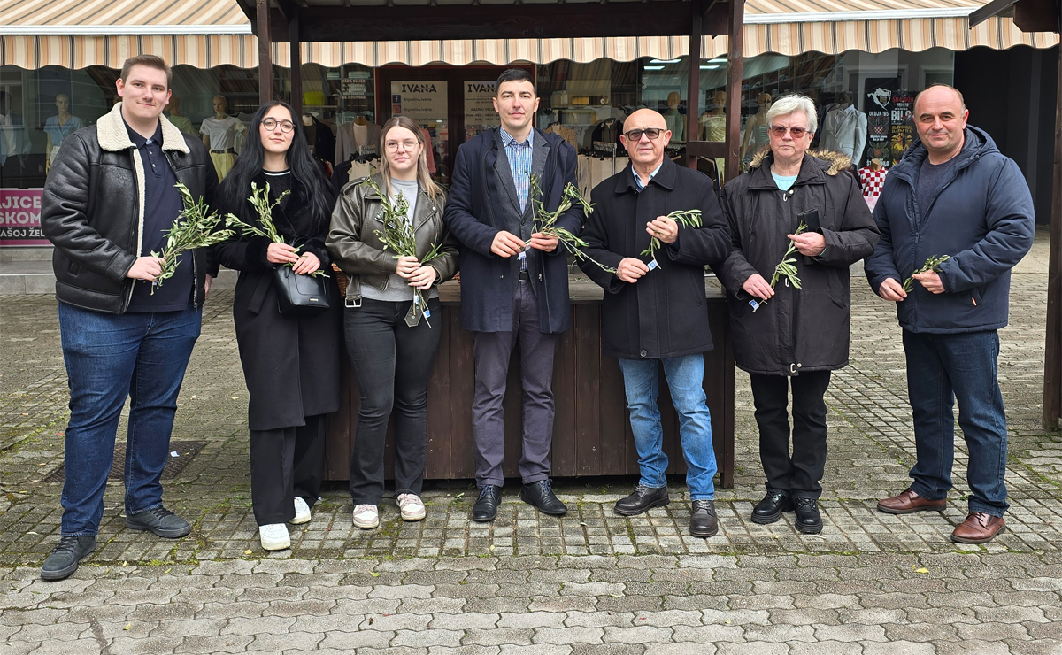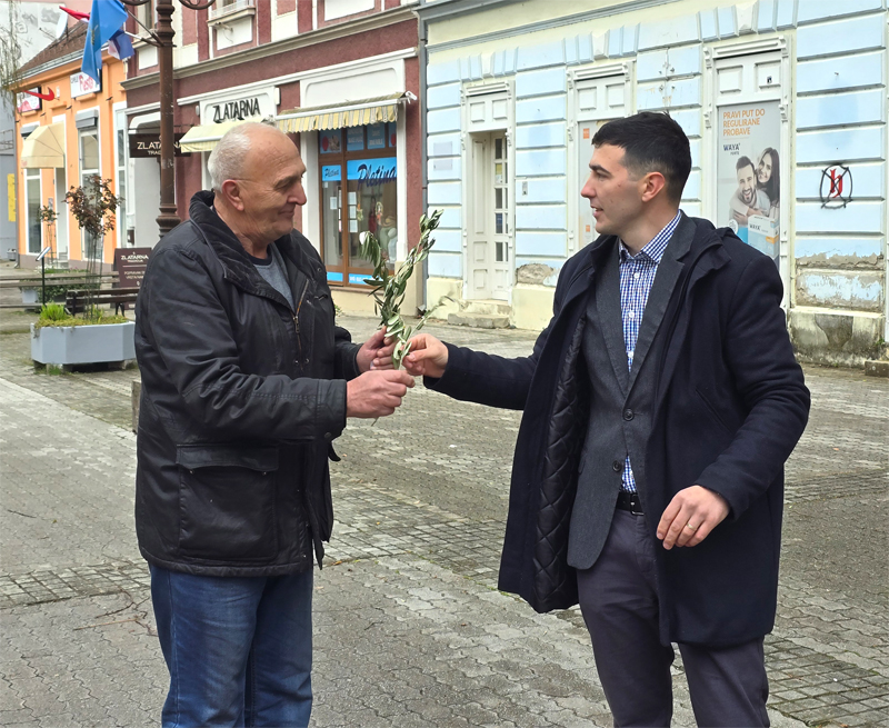 Članovi Gradske organizacije HDZ-a Nova Gradiška i Mladež HDZ-a NG, danas prijepodne, tradicionalno su uoči Cvijetnice građanima dijelili maslinove grančice u Ulici Slavonskih graničara.