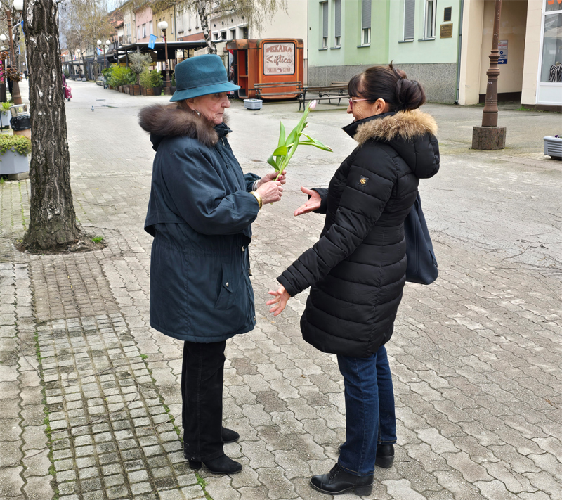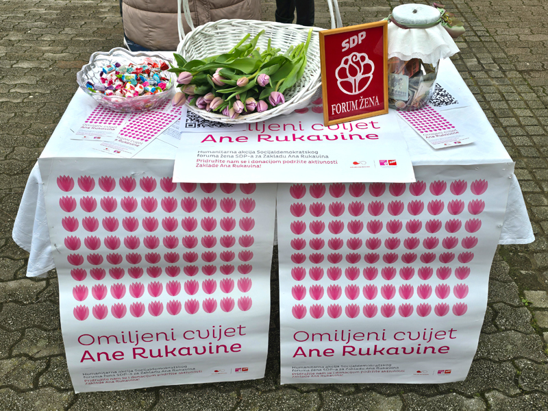 Forum žena Gradskog ogranka Sdp-a Nova Gradiška, kao i svake godine, pridružio se humanitarnoj akciji “Omiljeni cvijet Ane Rukavine”. Novogradiški članovi SDP-a i simpatizeri, usprkos lošijim vremenskim prilikama, organizirali su danas prijepodne darivanje tulipana građanima koji su dan iskoristili za subotnju šetnu Ulicom Slavonskih graničara.