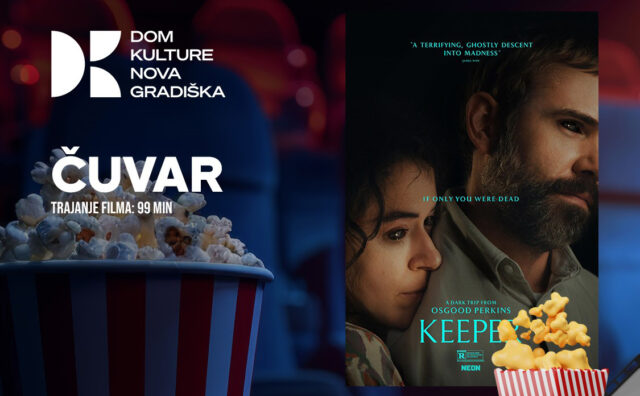 SADRŽAJ FILMA: Romantično obljetničko putovanje u osamljenu kolibu poprima zlokoban ton kada se otkrije mračna prisutnost, primoravši par da se suoči s ukletom prošlošću tog imanja. https://www.youtube.com/watch?v=RqV3TUOLsM0 ČUVAR ČETVRTAK, 13. 11. u 19:30 sati IZVORNO IME: Keeper REŽIJA: Oz Perkins ULOGE: Tatiana Maslany, Rossif Sutherland, Birkett Turton ŽANR: horor TRAJANJE FILMA: 99 min. GODINA: 2025. DRŽAVA: SAD, Kanada CIJENA ULAZNICE: 5,00 EURA DOBNA PREPORUKA: 15 Ulaznice možete rezervirati putem e-maila: domkulturenovagradiska@gmail.com, na br. telefona: 035/637-799, kupiti u...