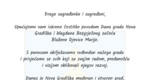 Čestitka vodstva grada povodom Dana Grada i blagdana Bezgrješnog začeća BDM